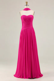 weitese's Make a bold statement in this fuchsia chiffon halter gown: featuring a ruched strapless bodice, a dramatic flowing cape, and a pleated full skirt. The lightweight chiffon delivers soft movement, balancing vibrant color with elegant drama—perfect for galas, weddings, or red-carpet events. Eye-catching, glamorous, and utterly sophisticated.