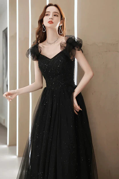Black Tulle Sweetheart Long Party Dress