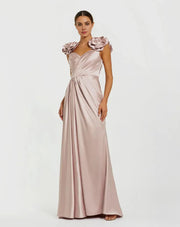 weitese's Elevate your romantic look with this blush satin maxi dress. It features oversized floral shoulder details for dramatic allure, a sweetheart neckline for classic charm, and a ruched bodice with draped detailing for tailored sophistication. The luxurious satin fabric ensures a refined appearance, making it perfect for formal events, bridal parties, or any occasion where you want to blend timeless elegance with contemporary style.