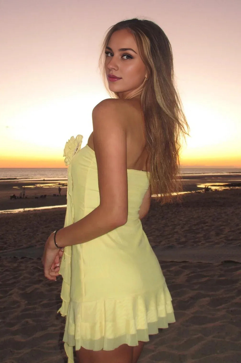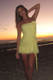weitese's stylish sheath dress features a strapless, sleeveless design with a zipper closure for a sleek fit. Adorned with delicate 3D floral accents, its short mini length makes it perfect for homecoming or special occasions. The tailored silhouette enhances your figure while offering a modern, elegant look.