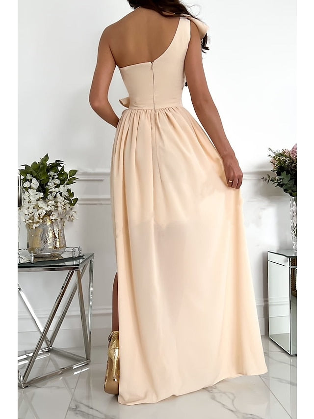 Prom Dresses Swing Dress Long Dress Maxi Dress Wine Red Green Sleeveless Pure Color Patchwork Summer Spring Cold Shoulder Elegant Wedding Guest - As picture / US 2 / UK 6 / EU 32