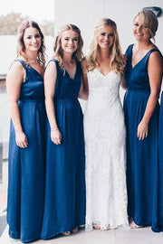Royal Blue V Neck Floor Length Bridesmaid Dress/Formal Women's Dresses