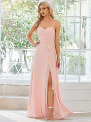 Weitese Front Slit Sweetheart Crossed Back Tie Chiffon Bridesmaid Dress