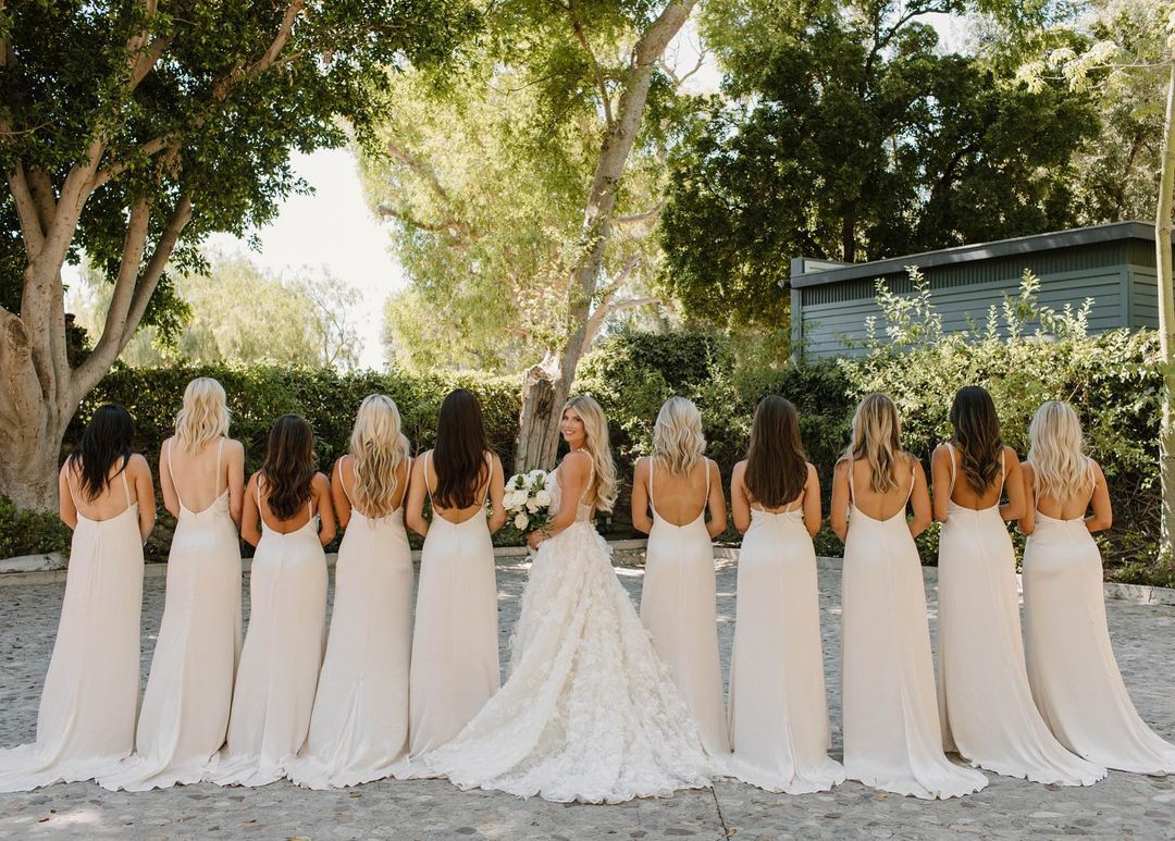 Weitese's elegant long bridesmaid dress features a simple sheath silhouette with delicate spaghetti straps, crafted in a light champagne hue. Its minimalist design offers a flattering fit that enhances your natural shape while providing comfort for all-day wear. Perfect for weddings or formal occasions, this dress combines understated sophistication with timeless style.