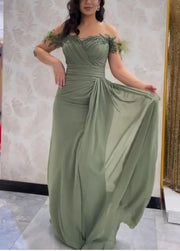 A-line Beaded Chiffon Long Sleeves Pleated Elegant Prom Dresses