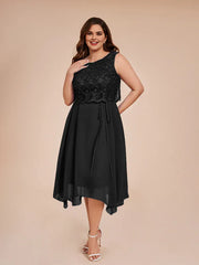 weitese's Elevate your cocktail style with this plus size black one-shoulder midi dress. It features an ornate lace bodice (adding texture and elegance) paired with a lightweight chiffon high-low skirt for graceful movement, plus a matching sash to define the waist. Designed for comfort and sophistication, the dress balances refined details with a modern silhouette—ideal for weddings, cocktail parties, or upscale gatherings. The timeless black hue and inclusive fit make it a versatile standout, perfect for pairing with silver jewelry and strappy heels to complete a polished ensemble.
