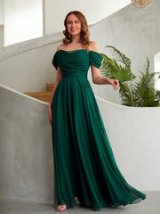 A-Line/Princess 30D Chiffon Ruched Off-the-Shoulder Sleeveless Floor-Length Dresses