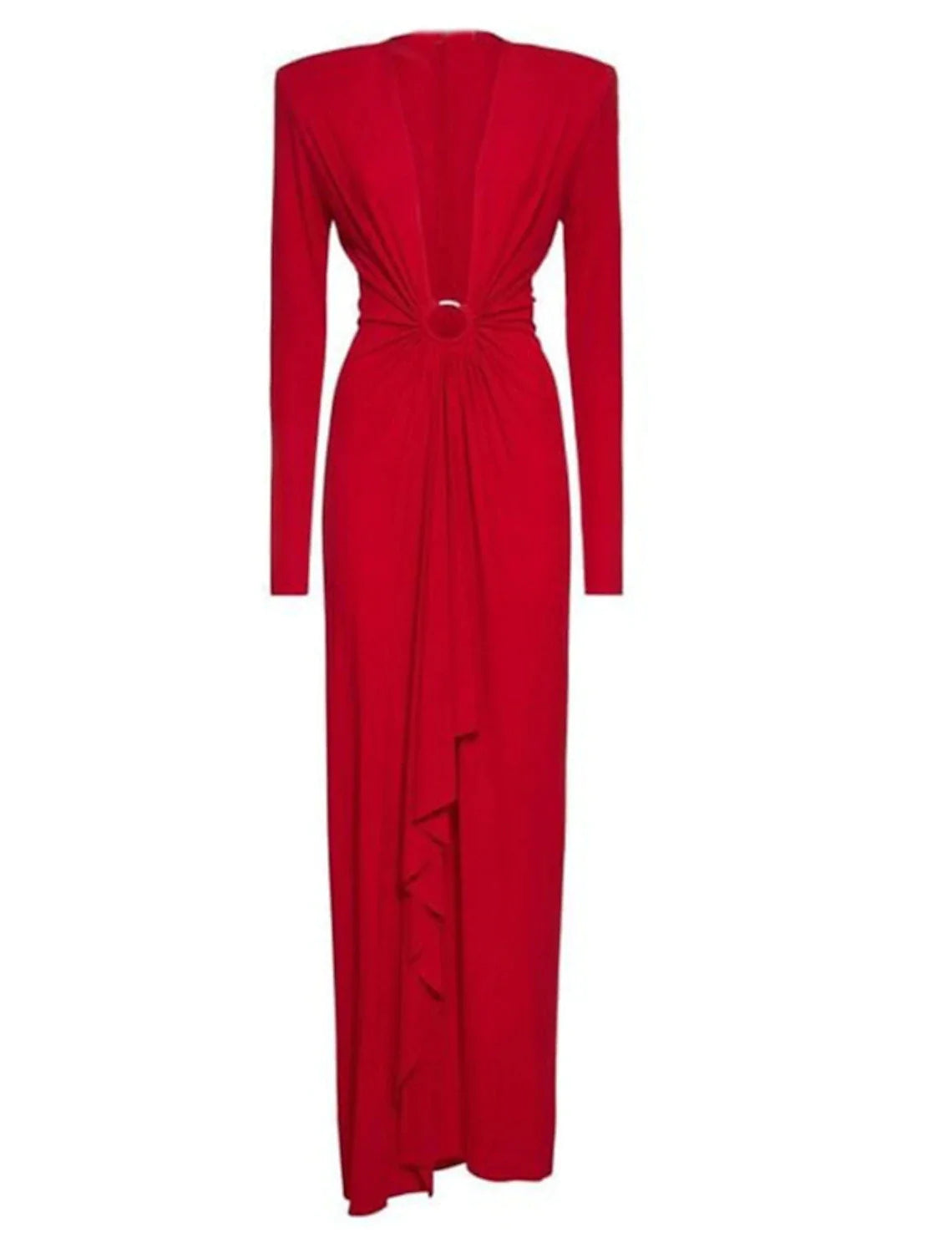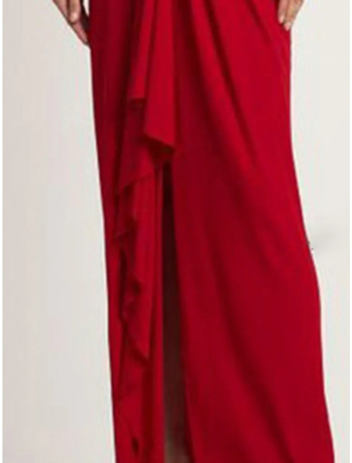 Evening Gown Elegant Dress Formal Ankle Length Christmas Red Green Dress Long Sleeve V Neck Stretch Chiffon with Pleats Slit - Red / US 2 / UK 6 / EU 32