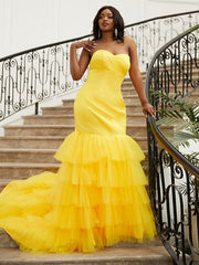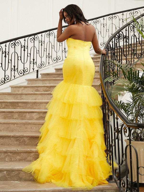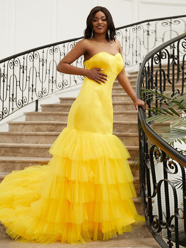 Trumpet/Mermaid Satin Layers Sweetheart Sleeveless Sweep/Brush Train Dresses