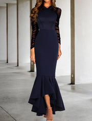 Mermaid / Trumpet Prom Dresses Elegant Dress Formal Wedding Guest Asymmetrical Long Sleeve V Neck Stretch Fabric - Dark Navy / US 2 / UK 6 / EU 32