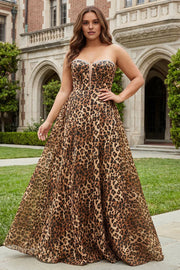 Modern Strapless A Line Sleeveless Leopard Print Floor-Length Plus Size Prom Dress