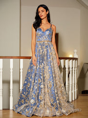A-Line/Princess Satin Lace V-neck Sleeveless Court Train Dresses