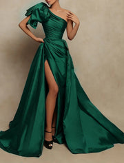 Weitese A-Line Evening Gown Celebrity Style Dress Formal Red Green Dress Court Train Sleeveless One Shoulder Satin with Ruched Slit - US 2 / UK 6 / EU 32