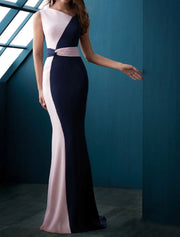 Weitese Mermaid Party Dress Evening Gown Color Block Dress Formal Evening Sweep / Brush Train Sleeveless Jewel Neck Fall Wedding Guest Chiffon with Sleek