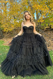 Weitese Princess A Line Sweetheart Black Corset Prom Dress with Ruffles
