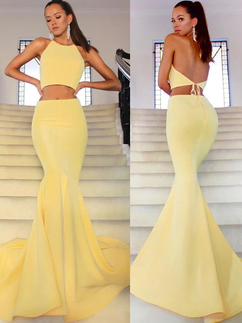 Weitese Two Piece Pink Long Prom Dress with Slit Mermaid Prom Dress