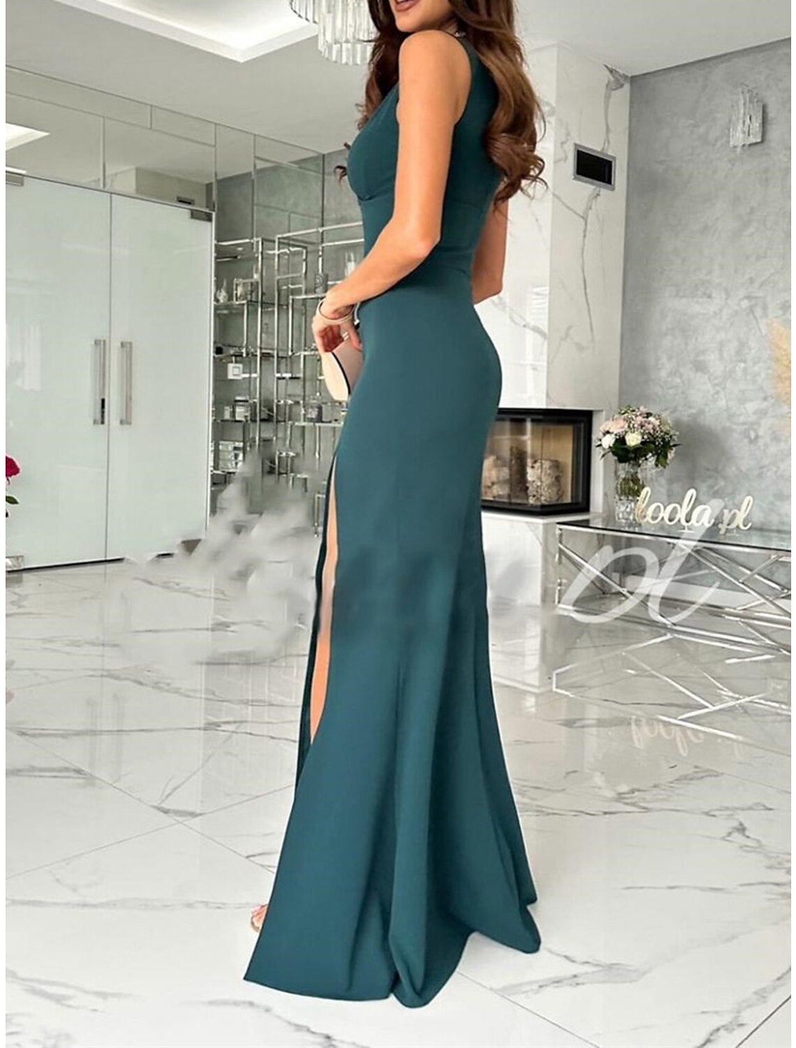 Weitese Women‘s Prom Dress Wedding Guest Party Dress Homecoming Dress Sheath Dress Long Dress Maxi Dress Black Red Green Sleeveless Pure Color Backless Summer Spring V Neck Party Evening - Green / US 2 / UK 6 / EU 32