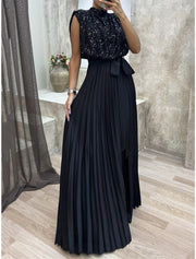 Weitese Women's Black Sequin Dress Little Black Dress Prom Dress Party Dress Sparkly Dress Long Dress Maxi Dress Black Sleeveless Spring Fall Winter Crew Neck Evening