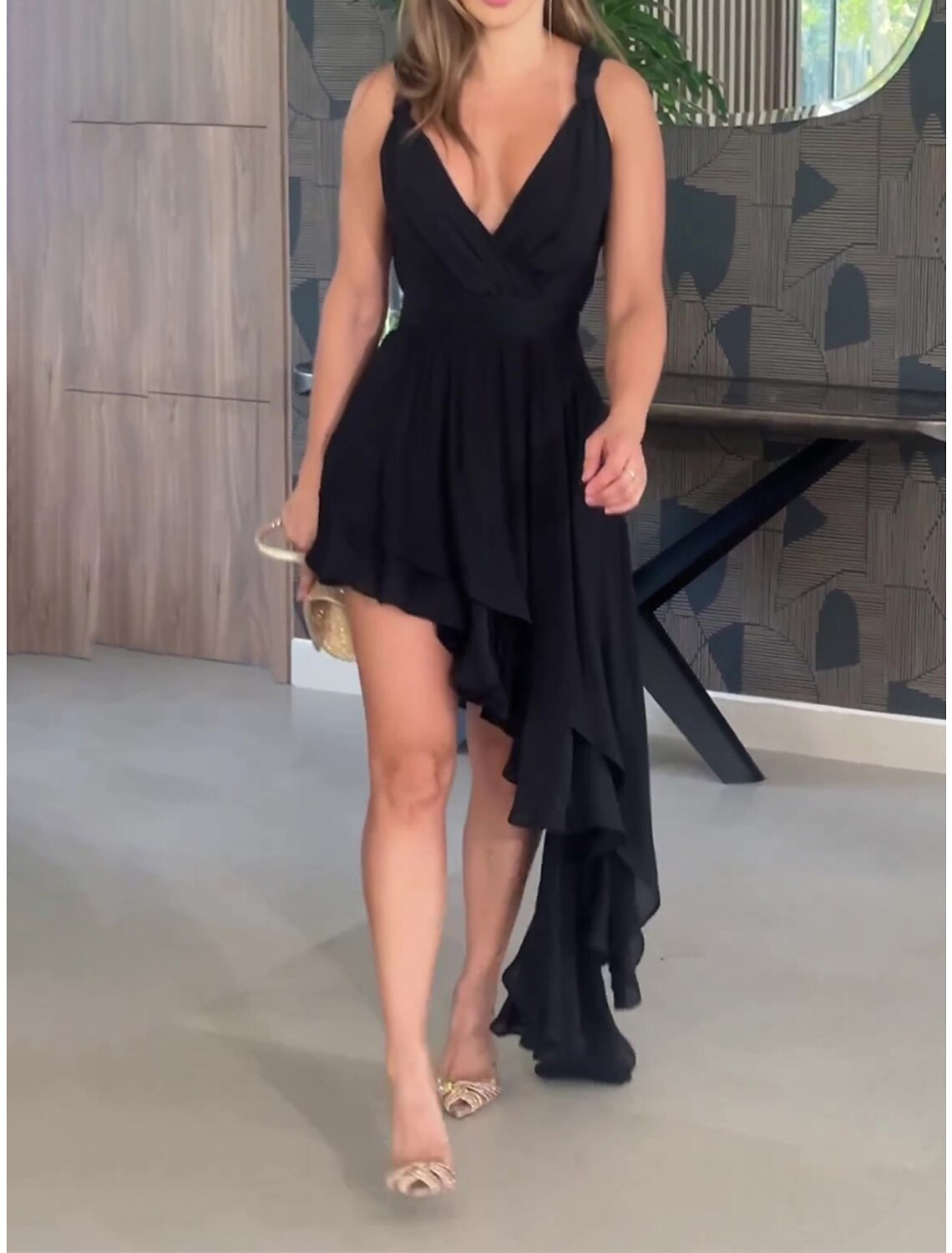 Weitese Women's Little Black Dress Prom Dress Party Dress Wedding Guest Dress Long Dress Maxi Dress Sleeveless Ruffle Spring Deep V Fashion Evening Party Wedding Guest