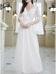 Weitese Women's Prom Dress Party Dress Lace Dress Long Dress Maxi Dress White Long Sleeve Pure Color Lace Summer Spring Fall V Neck Party Evening Party Wedding Guest Summer Dress - US 2 / UK 6 / EU 32