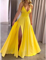 Weitese Women's Prom Dress Party Dress Sheath Dress Long Dress Maxi Dress Yellow Sleeveless Pure Color Ruched Fall Winter Autumn Spaghetti Strap Fashion Evening Party Vacation - US 2 / UK 6 / EU 32