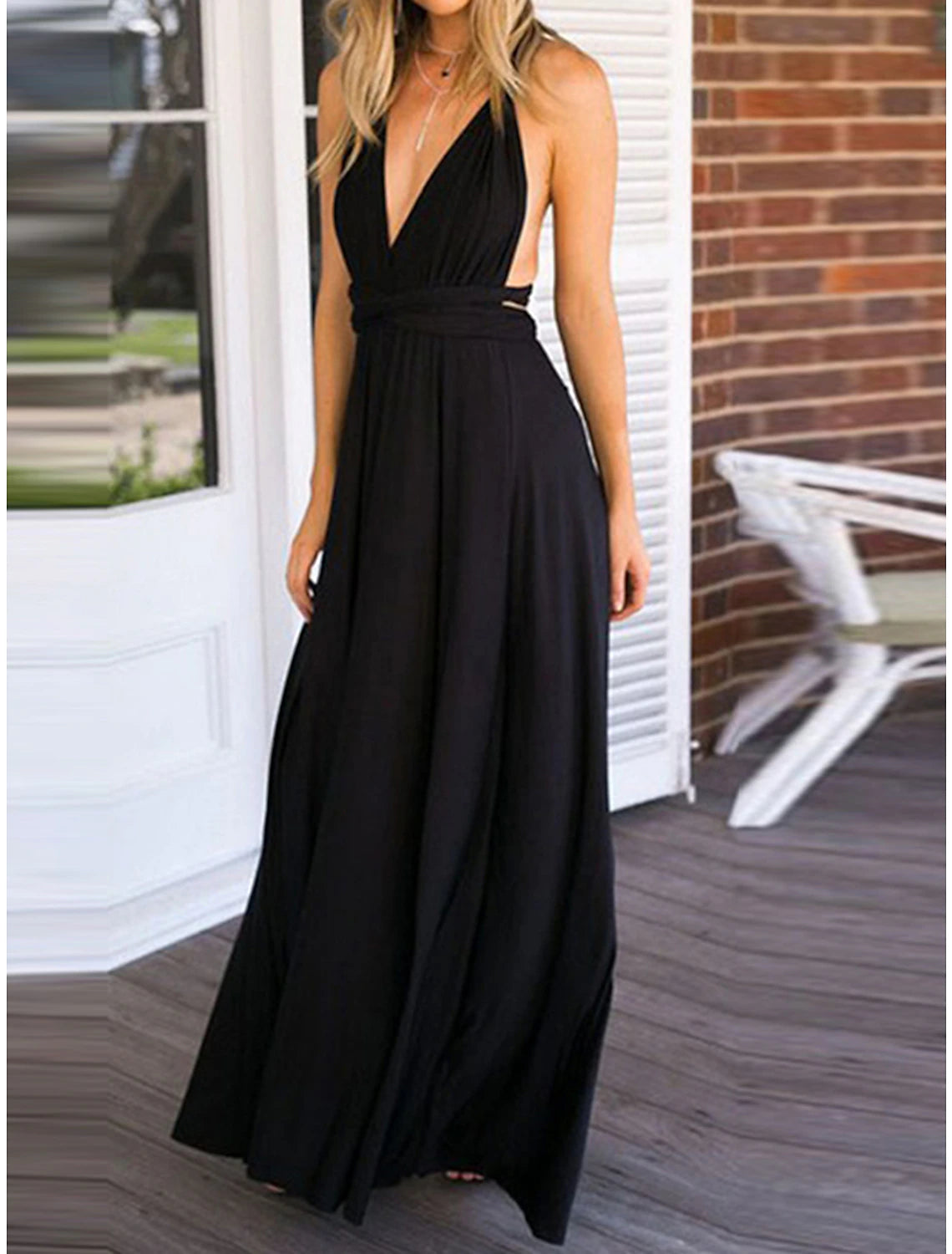 Weitese Women's Prom Dress Party Dress Wedding Guest Dress Long Dress Maxi Dress Black Pink Wine Sleeveless Plain Lace up Summer Spring Fall Spaghetti Strap Elegant Wedding Guest Evening Party Vacation