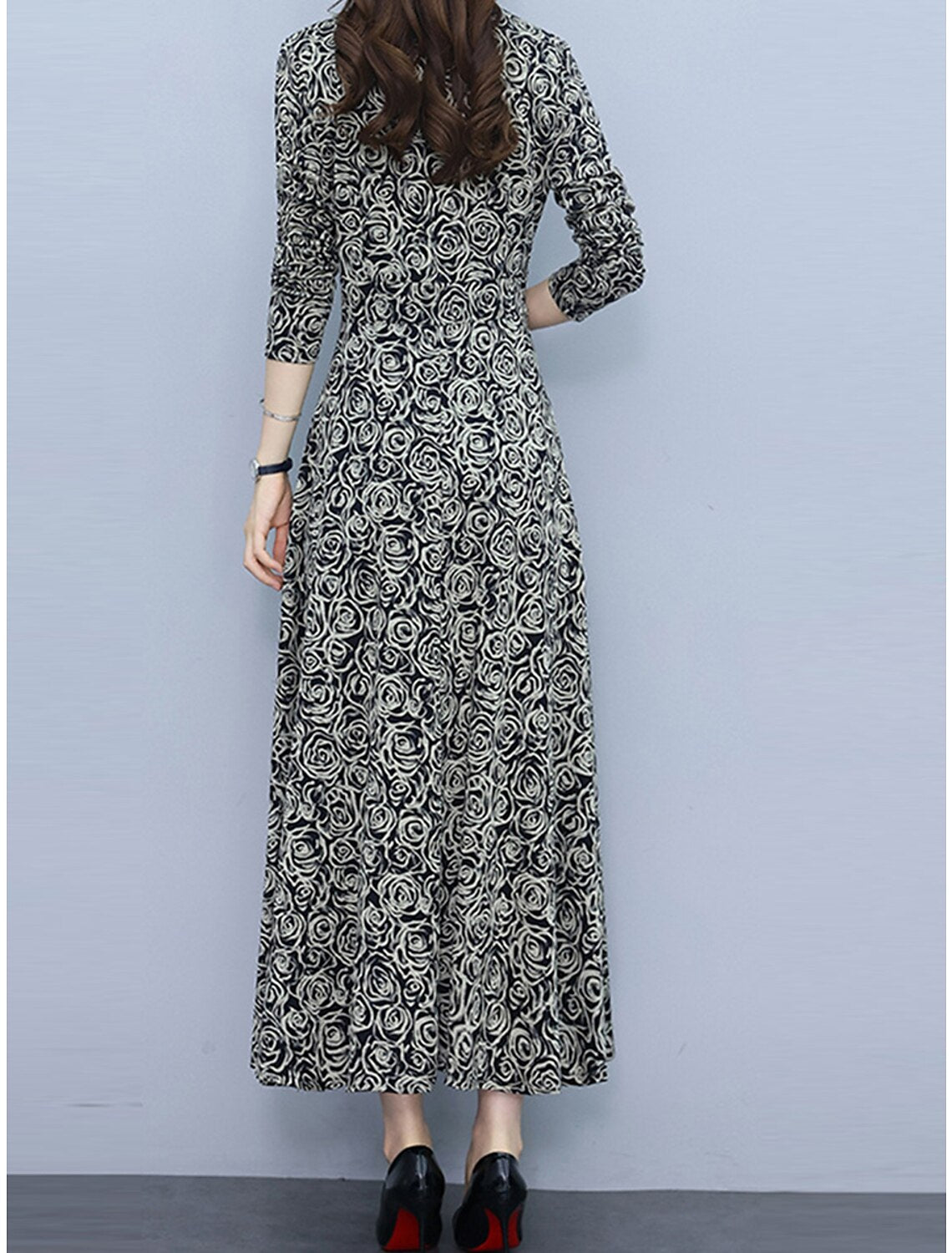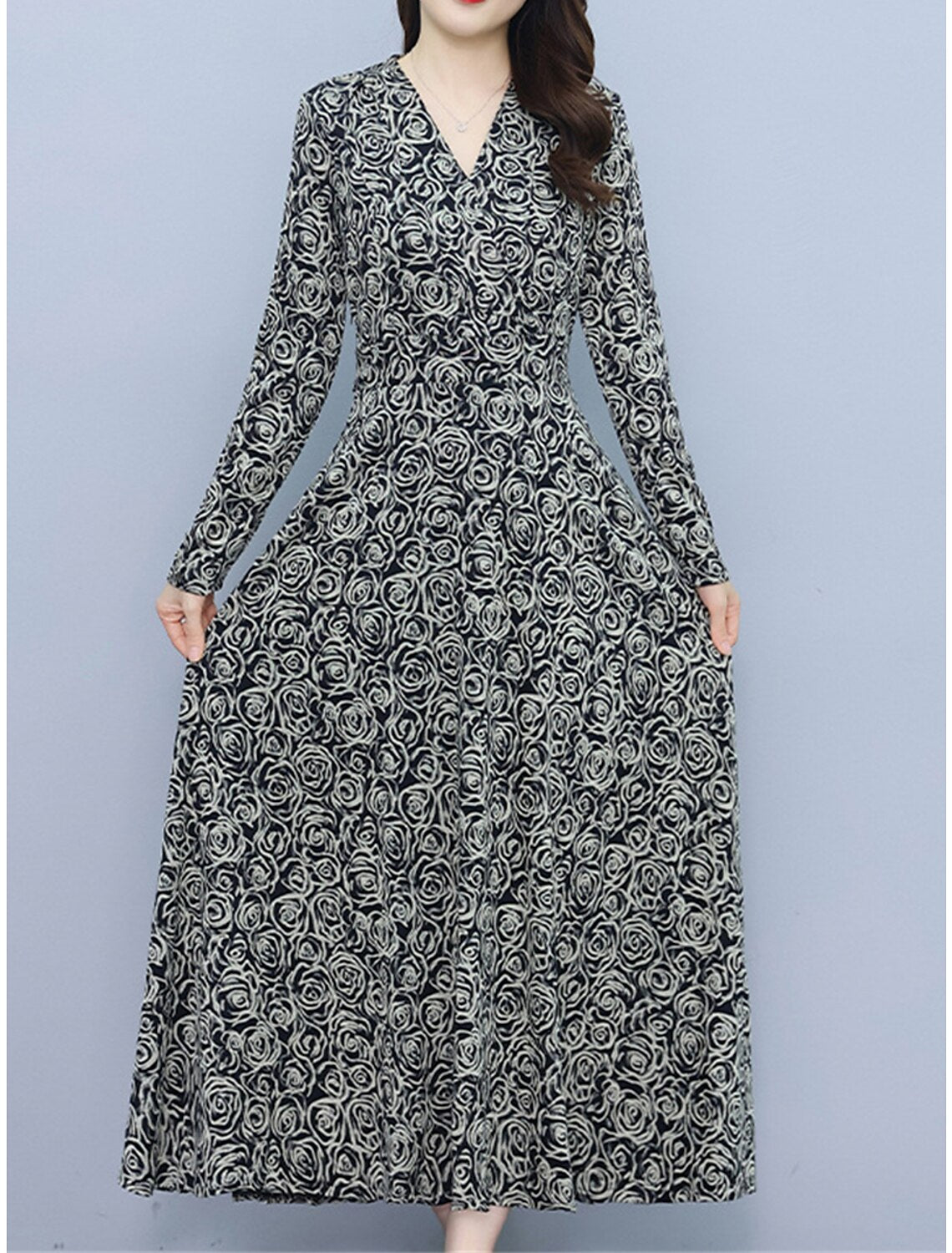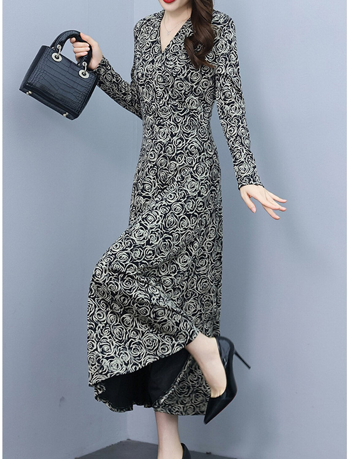 Weitese Women's Prom Dress Party Dress Wedding Guest Dress Long Dress Maxi Dress White Red Long Sleeve Floral Print Summer Spring Fall V Neck Elegant Wedding Guest Evening Party Vacation - US 2 / UK 6 / EU 32