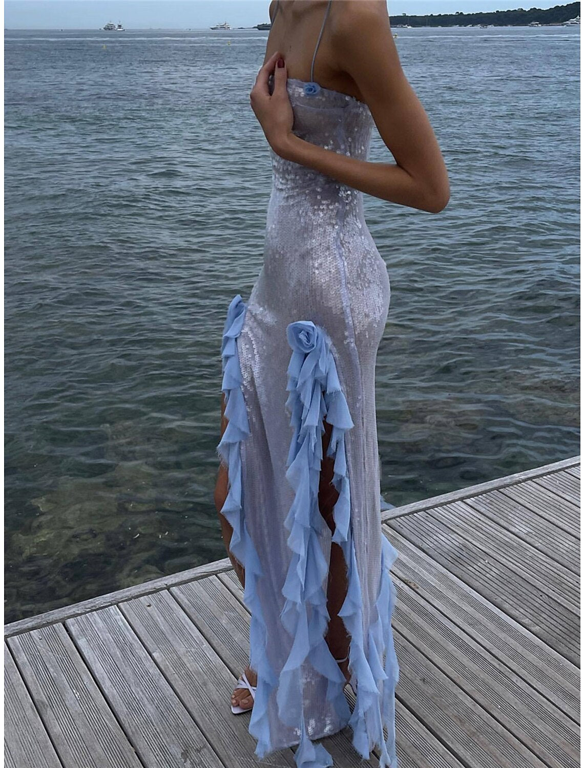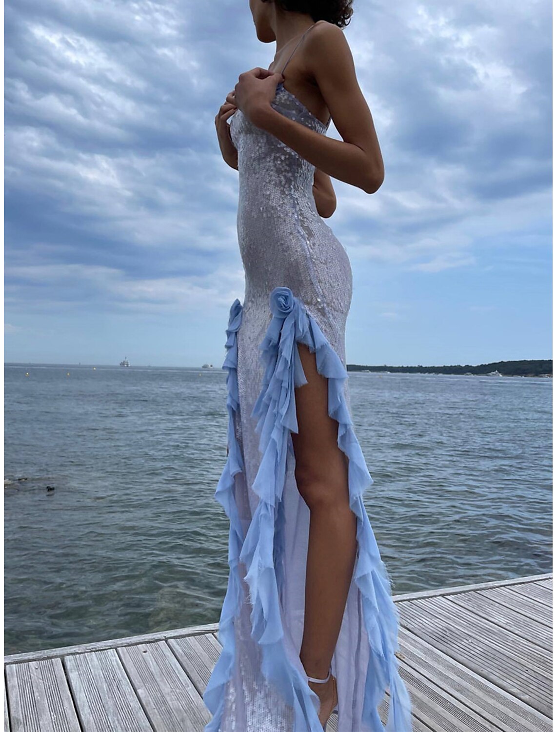 Weitese Women's Sequin Dress Prom Dress Party Dress Sparkly Dress Cocktail Dress Long Dress Maxi Dress Blue Sleeveless Summer Spring Fall Spaghetti Strap Fashion Evening - US 2 / UK 6 / EU 32