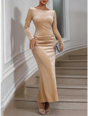 Weitese Women's Velvet Dress Prom Dress Party Dress Long Dress Maxi Dress Champagne Long Sleeve Plain Backless Summer Spring Fall Crew Neck Elegant Winter Dress Wedding Guest Evening Party - US 2 / UK 6 / EU 32