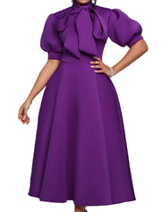 Women‘s Prom Cocktail Party Dress Wedding Guest Dress Swing Dress Long Dress Maxi Dress Purple Yellow Red Half Sleeve Pure Color Bow Spring Summer Stand Collar