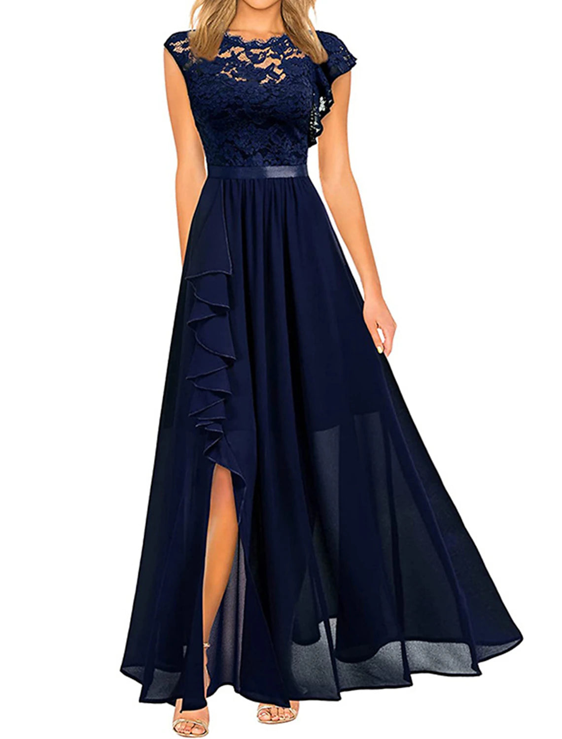 Women's Black Dress Prom Dress Party Dress Long Dress Maxi Dress Black Pink Wine Short Sleeve Pure Color Lace Spring Fall Winter Crew Neck Fashion Winter Dress Christmas Wedding Guest