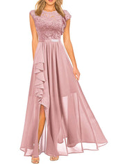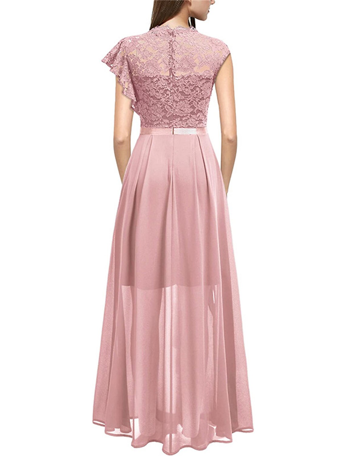 Women's Black Dress Prom Dress Party Dress Long Dress Maxi Dress Black Pink Wine Short Sleeve Pure Color Lace Spring Fall Winter Crew Neck Fashion Winter Dress Christmas Wedding Guest - Pink / US 2 / UK 6 / EU 32