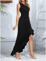 Women's Black Dress Prom Dress Party Dress Long Dress Maxi Dress Black Red Sleeveless Plain Ruffle Summer Spring Fall One Shoulder Party Winter Dress Wedding Guest Birthday