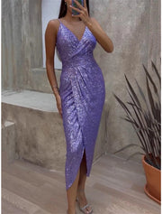 Women's Black Sequin Dress Prom Dress Party Dress Sparkly Dress Long Dress Maxi Dress Black Purple Sleeveless Sparkly Glitter Summer Spring Fall Spaghetti Strap Fashion Winter Dress Wedding - US 2 / UK 6 / EU 32