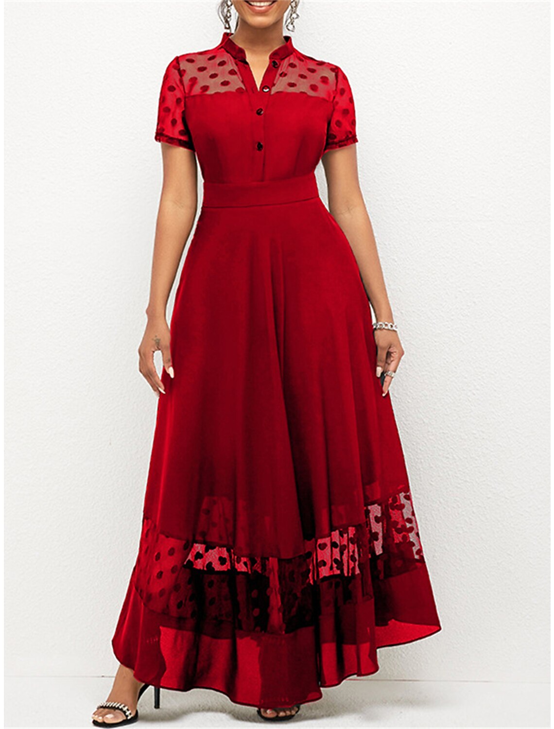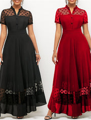 Women's Prom Dress Party Dress Cocktail Dress Long Dress Maxi Dress Black Wine Short Sleeve Polka Dot Ruched Spring Fall Winter V Neck Fashion Winter Dress Wedding Guest Birthday