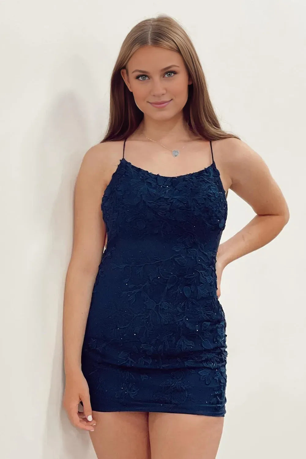 Bodycon Spaghetti Straps Pink Short Homecoming Dress - Navy / US 2 / UK 6 / EU 32