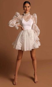 Evening Dresses For Women/ Sweetheart A-Line Ruffle Illusion Cocktail Dress Long Sleeves Short Hight Neck Homecoming Wedding Prom Dress Evening Dresses