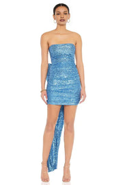 weitese's Elevate your party style with this blue sequin strapless mini dress. It features a sleek strapless neckline, an oversized bow with draped detail at the back for dramatic flair, and all-over sequin embellishments that shimmer brilliantly. Crafted for maximum glamour, this dress is perfect for proms, cocktail parties, or any upscale occasion. The vibrant blue hue and eye-catching design make it a standout choice, ideal for pairing with statement jewelry and strappy heels to complete a confident ensemble.
