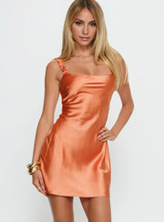 weitese's Elevate your glamorous and playful style with this orange satin ruffled strap mini dress. It features luxurious satin fabric with ruffled shoulder straps for delicate charm, a square neckline for timeless elegance, and a bodycon silhouette for sleek sophistication. The dress is perfect for parties, date nights, or any occasion where you want to embrace bold vibrancy with a touch of retro-inspired allure.