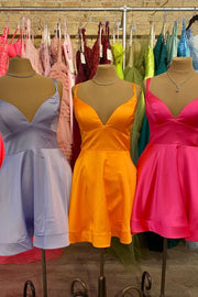 Weitese Dress Double Spaghetti Straps Lavender Satin Short Party Dress Lace-Up Back Homecoming Dress