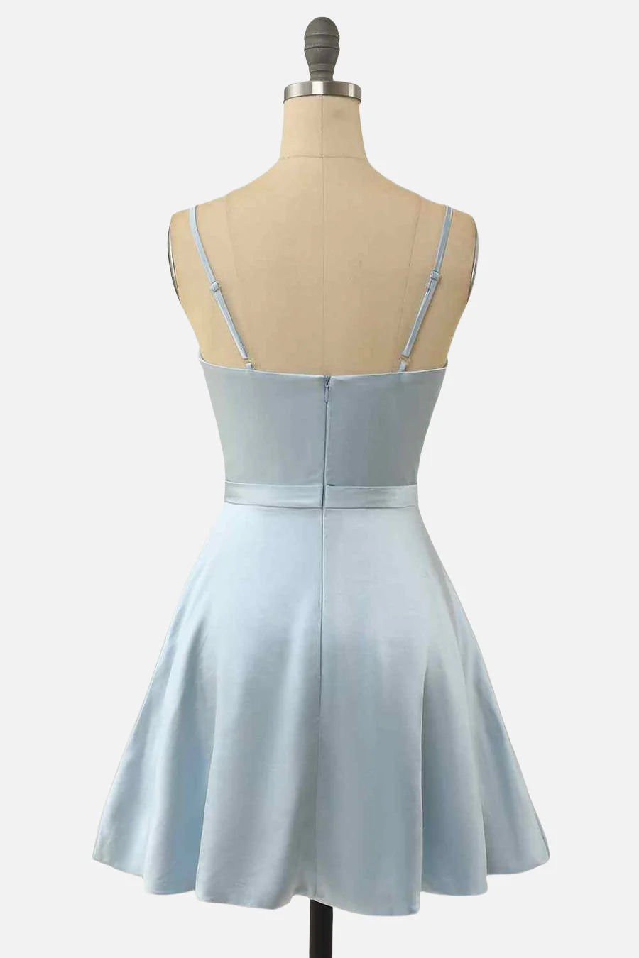 Weitese Dress Spaghetti Straps Blush Twist Short Party Dress Zip-Up Back Homecoming Dress