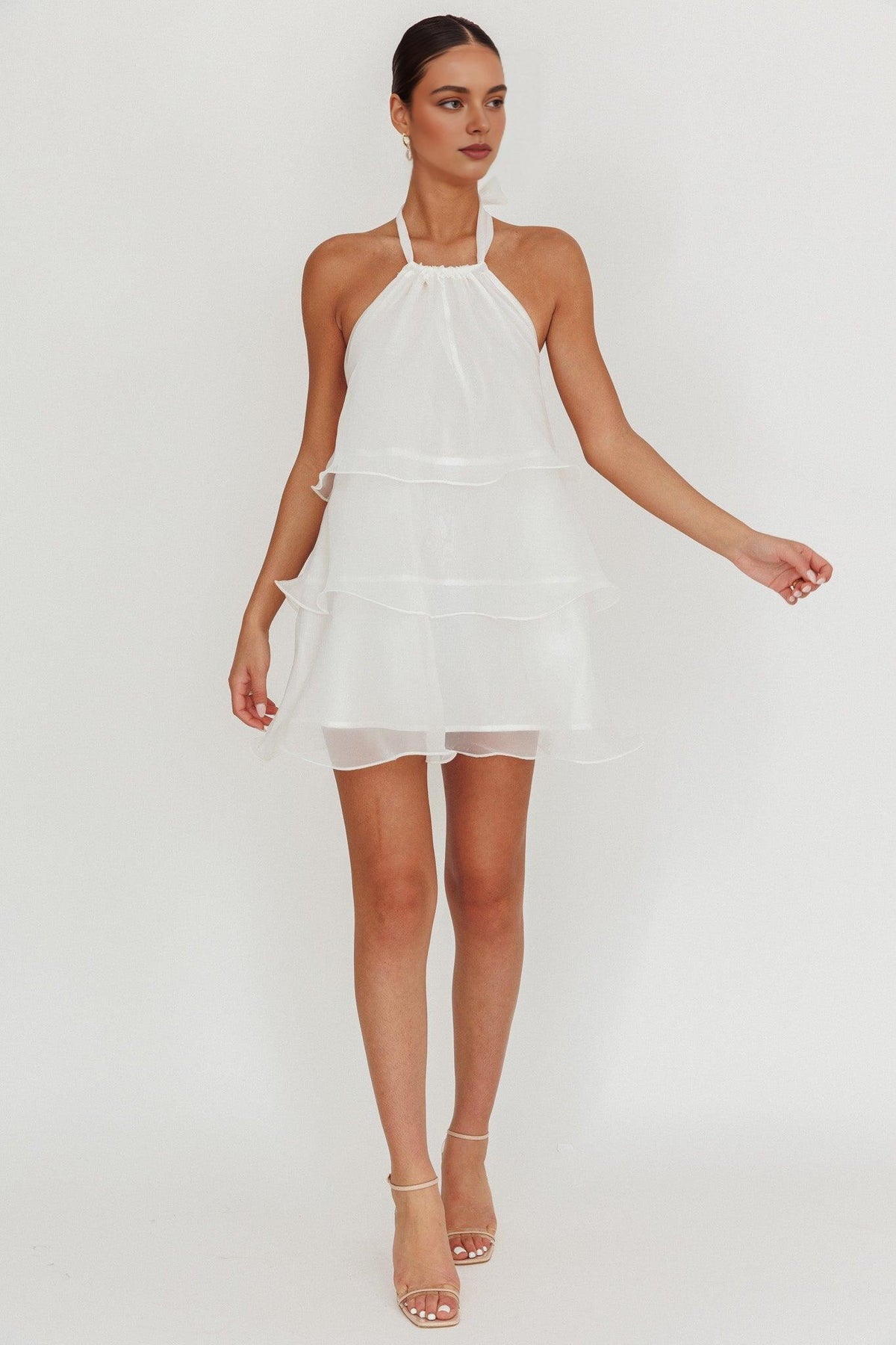 Weitese Dress Stunning Tiered Halterneck Mini Dress White Sleeveless Cold Shoulder Homecoming Dress