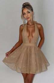 Women Dresses Sexy Deep V Neck Gold Sparkle Backless Sleeveless Party Cocktail Club Dress Homecoming Dresses