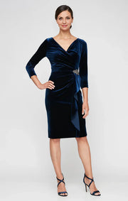 weitese's Elevate your luxurious charm with this navy blue velvet V-neck sheath dress. It features plush velvet fabric with a V-neckline that flatters the bust, a ruffle detail with an embellished waist for elegant charm, and 3/4 sleeves for refined coverage. The sheath silhouette makes it perfect for formal events, evening parties, or any occasion where you want to embrace opulent, timeless style.