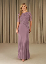 Elegance Mermaid Scoop Neck Short Sleeve Back Zip Floor-Length Mother of the Bride Dress - US 2 / UK 6 / EU 32