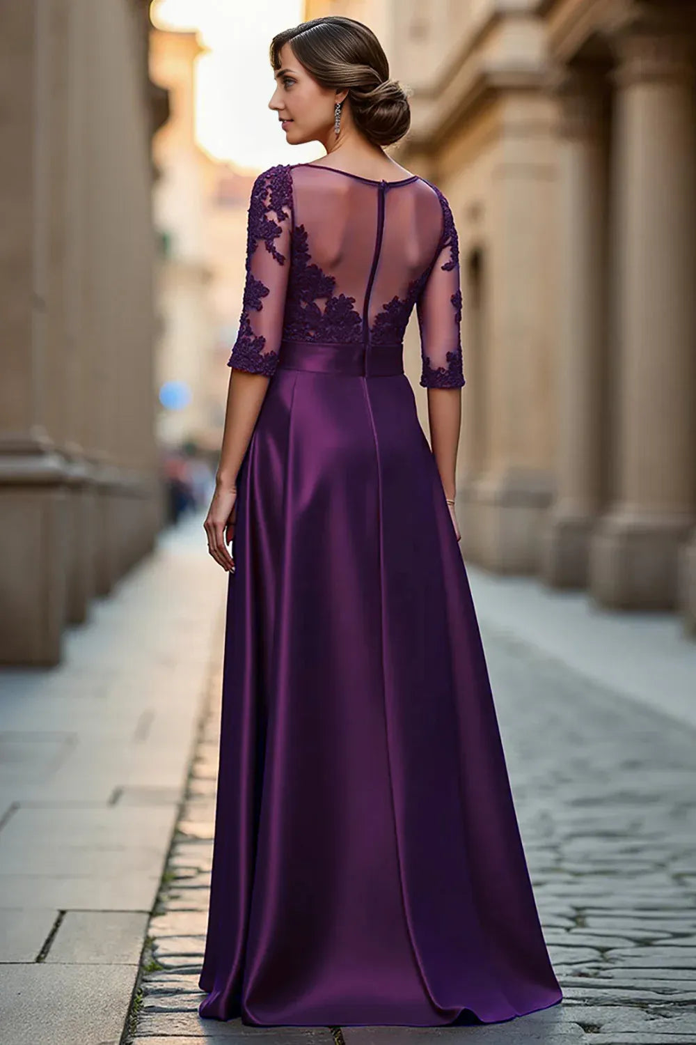 Elegant A Line Boat Neck Long Sleeve Zipper Up Floor-Length Mother of the Bride Dress