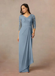 Elegant Sheath V Neck Three-Quarter Sleeve Back Zip Floor-Length Mother of the Bride Dress - US 2 / UK 6 / EU 32