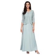Elegant Two-Piece Square Neck Long Sleeve Zipper Up Floor-Length Mother of the Bride Dress - Dusty Blue / US 2 / UK 6 / EU 32