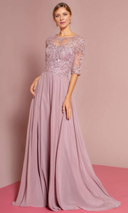 Formal Women's Dresses Handmade Half Sleeve Embroidered Illusion Lace Gown A-line Prom Dress Mother of the Bride Dress Prom Dresses Stores - Blush Pink / US 2 / UK 6 / EU 32