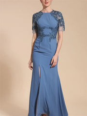 Formal Women's Dresses Trumpet/Mermaid Short Sleeves Ankle-Length Mother of the Bride Dresses with Slit Prom Dresses Stores